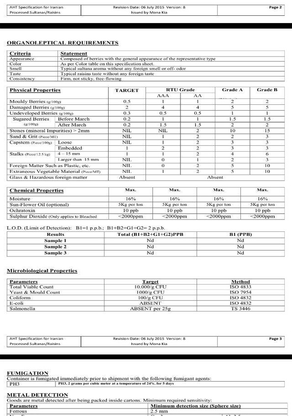 محصولات تولیدی شرکت خشکبار تیزاب تاک ملایر دانلود کاتالوگ محصولات Sultana Raisins pdf flie sultan-Golden pdf file Golden Raisins (Anguri) Black Raisins (Sun-Dried)