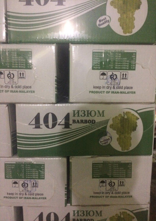 محصولات تولیدی شرکت خشکبار تیزاب تاک ملایر کشمش سبز قلمی تهیه شده از انگور قلمی و محلول کربنات پتاسیم و گاز اتیلن ارتباط با ما سفارش محصول